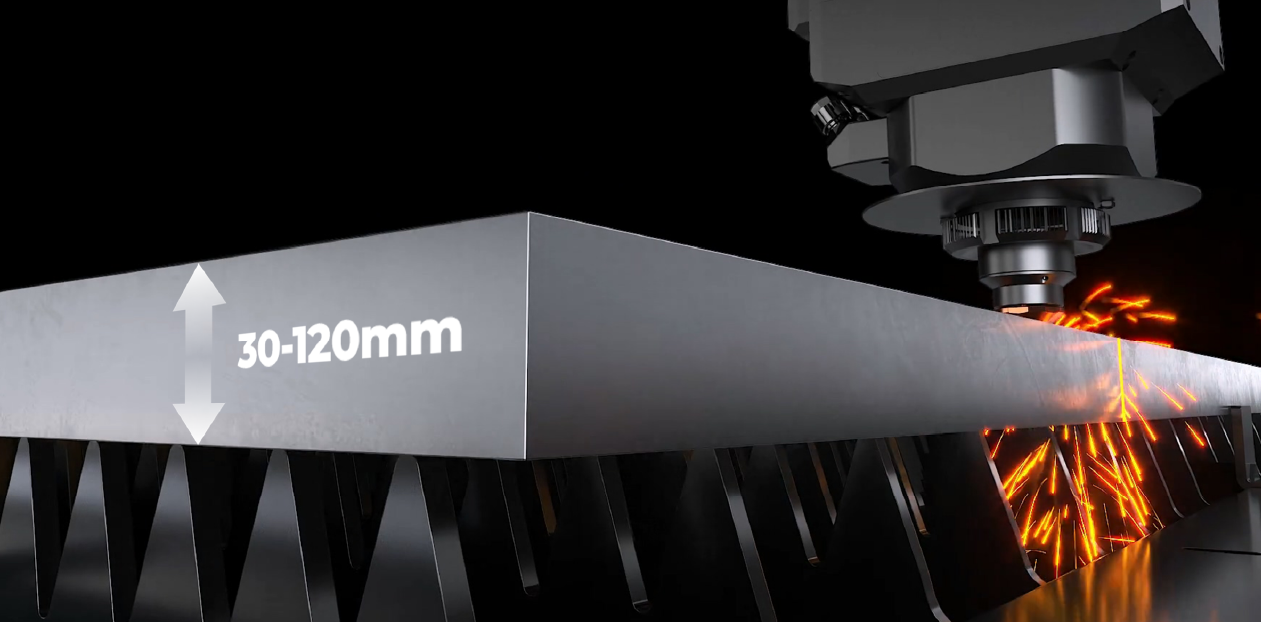 Effortlessly handles ultra-thick metal sheets from 30mm to 120mm. Equipped with a high-power laser source, it delivers deep penetration, high-speed cutting, and stable performance.