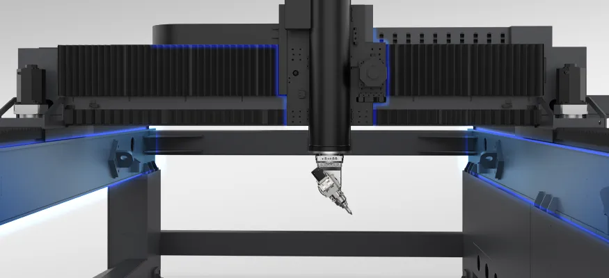 Designed with an overhead gantry structure and a main body integrally welded from high-strength steel plates, this machine significantly enhances overall rigidity and dynamic stability, providing a solid foundation for high-load processing.